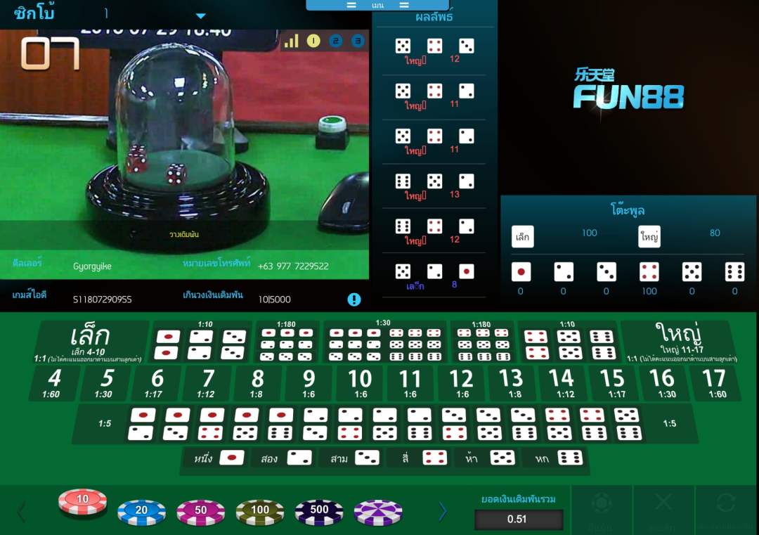 | แต้ม: | เดิมพันบนแต้มหน้าเต๋าหนึ่งลูก | 1:1 |